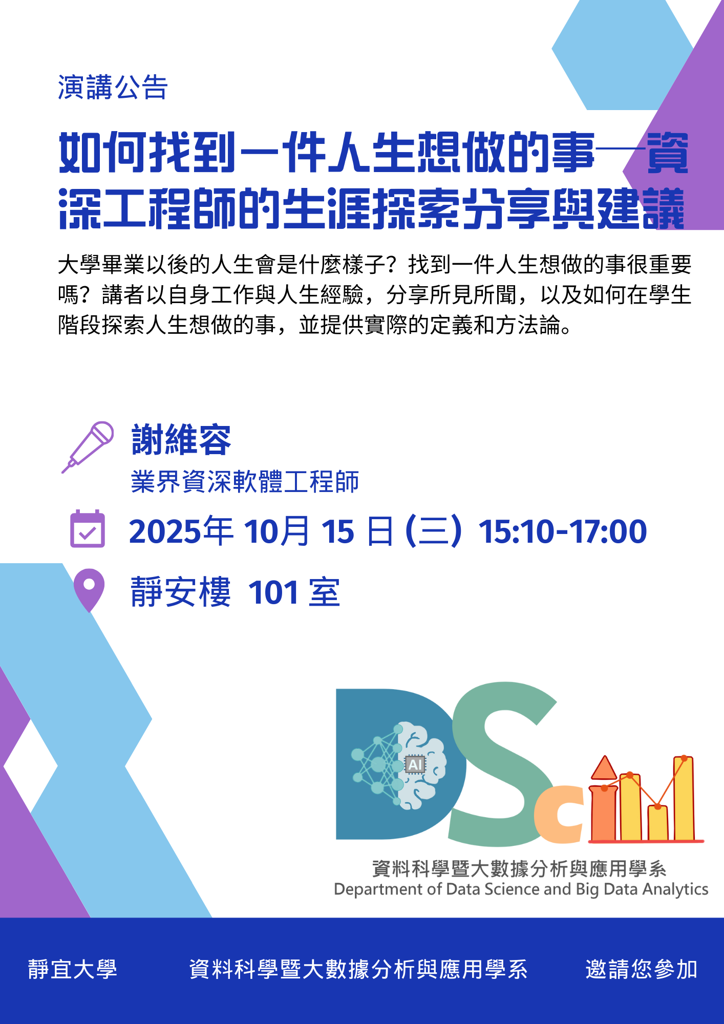 <演講公告>生涯規劃及職場倫理講座課程-(2025/10/15)專題演講