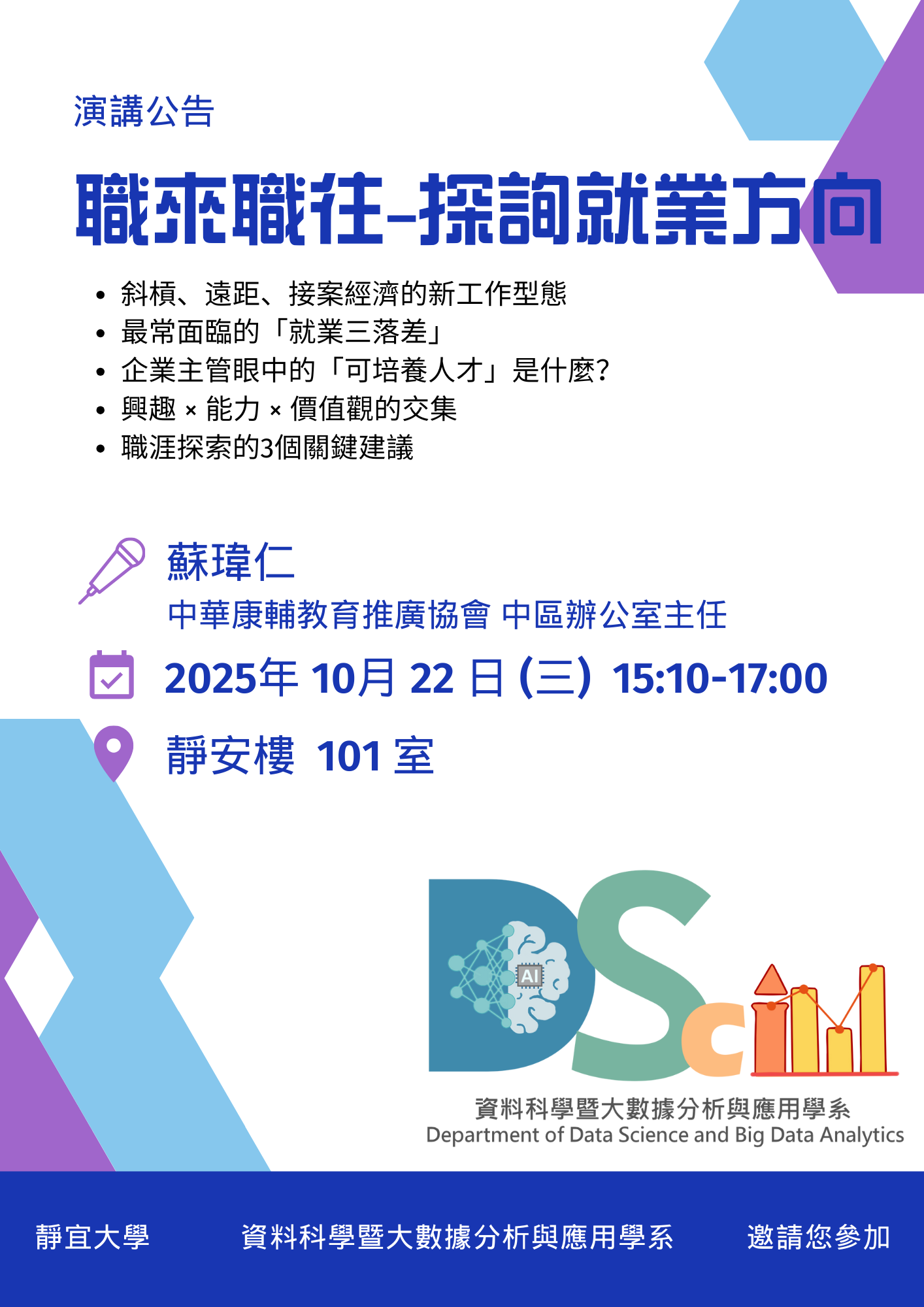 <演講公告>生涯規劃及職場倫理講座課程-(2025/10/22)專題演講